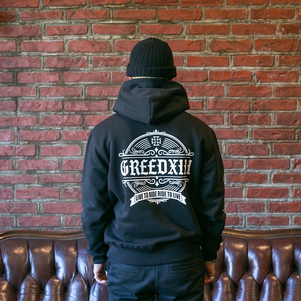 GREED13 Vintage circle HOODIE black